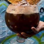 Tito’s Vodka, fresh lemon juice, Agave and Passion Fruit with fire bitters. Spicy and refreshing cocktail with Tajin rim & jalapeños.