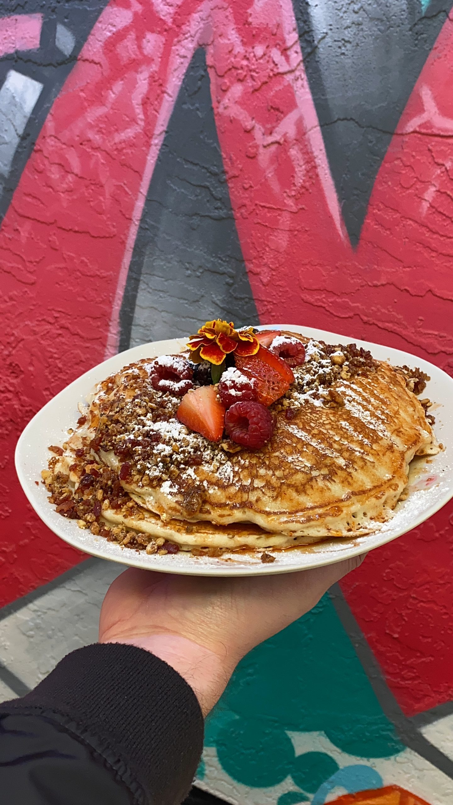 Chocolate Chip Chunks | Banana Slices | Candied Walnuts | Maple Syrup | Bacon Dust Bits | Powder Sugar