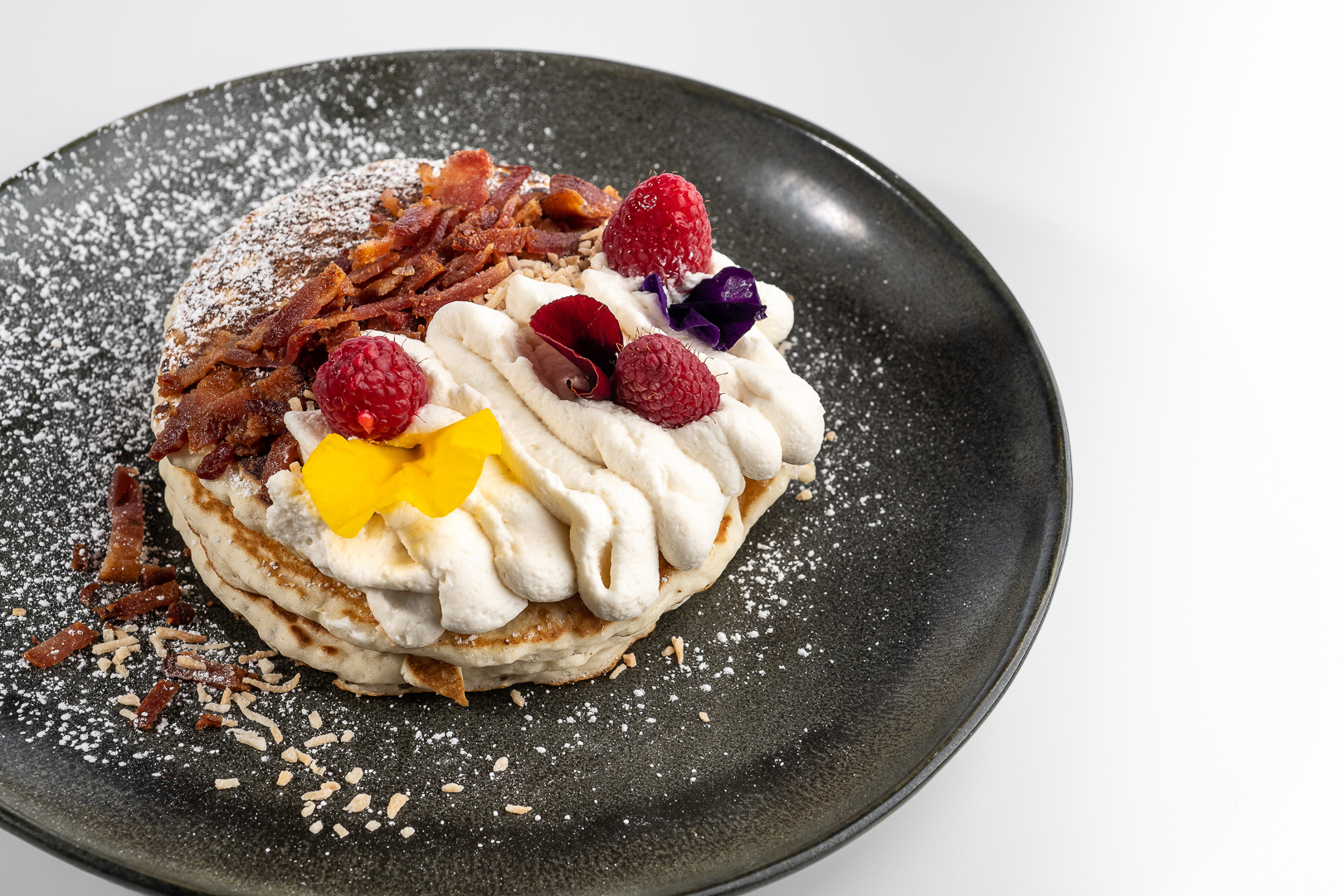 Dark Rum Maple Syrup I Toasted Coconut I Vanilla Chantilly I Crispy Bacon